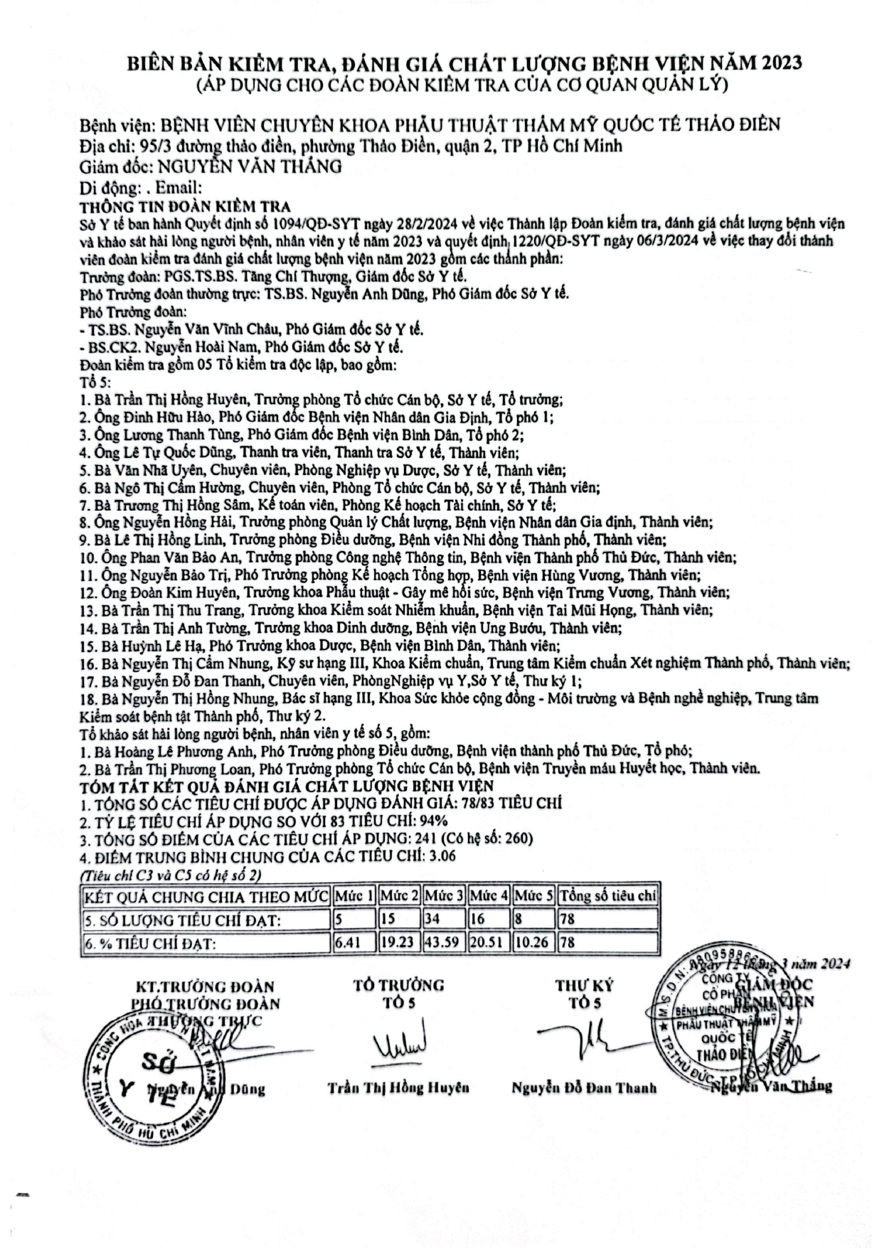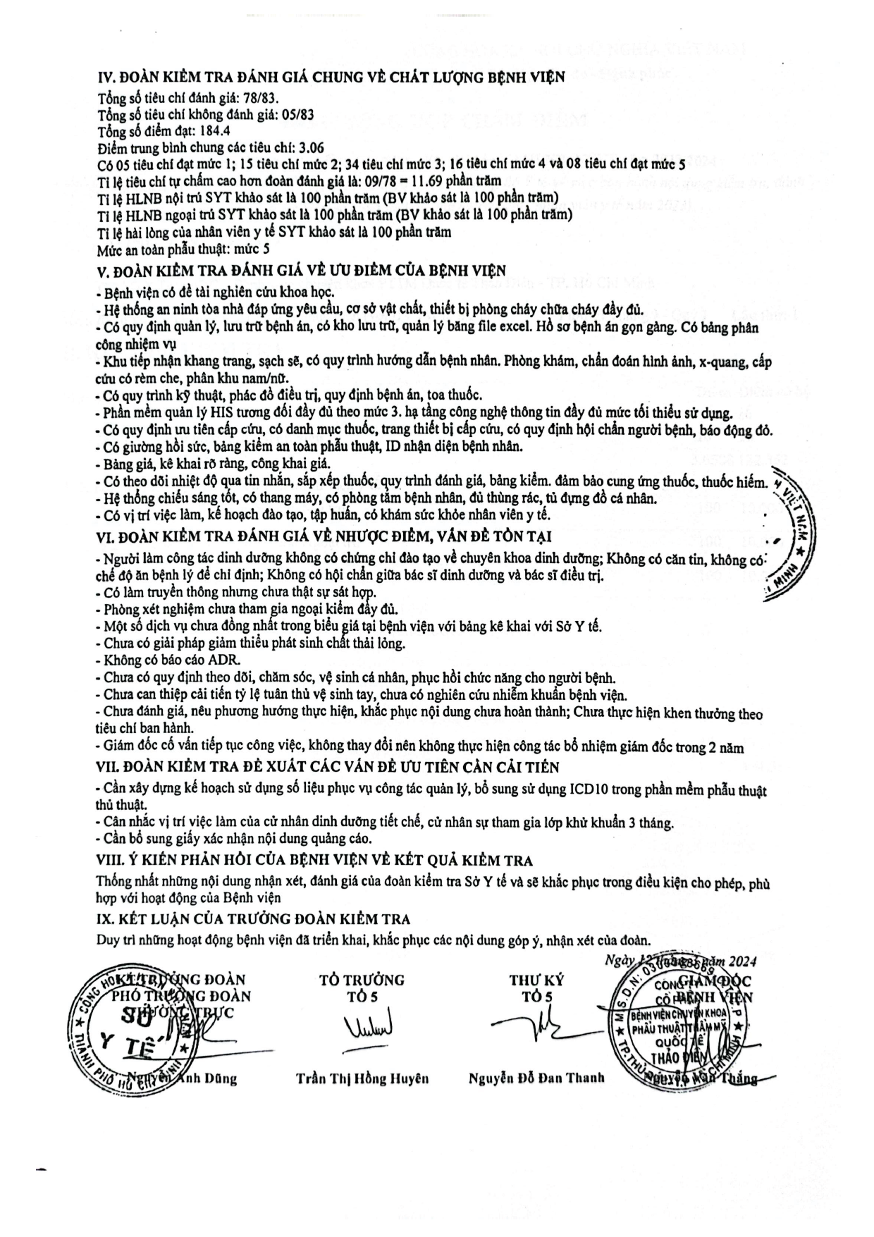 KẾT QUẢ KIỂM TRA ĐÁNH GIÁ CHẤT LƯỢNG BỆNH VIỆN NĂM 2023