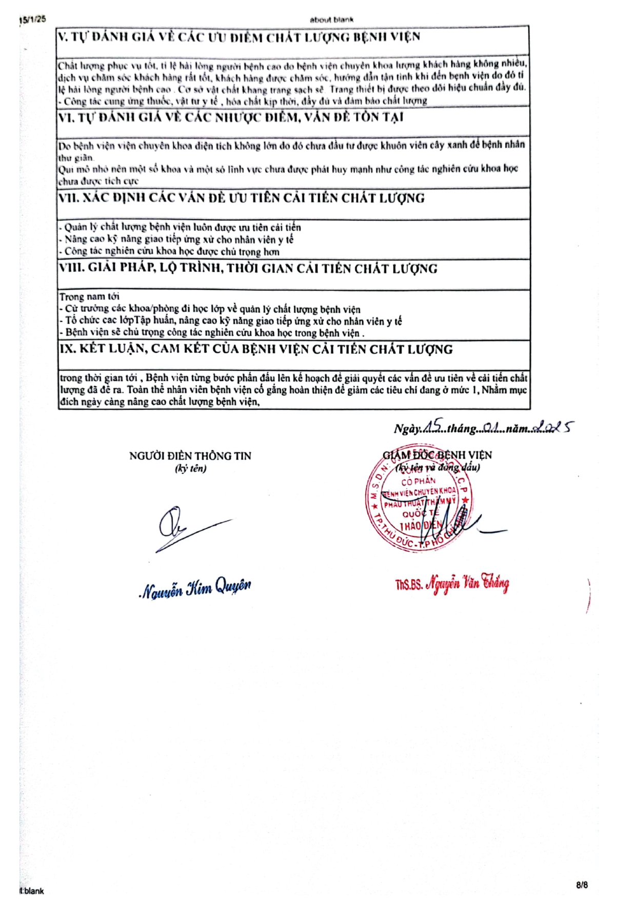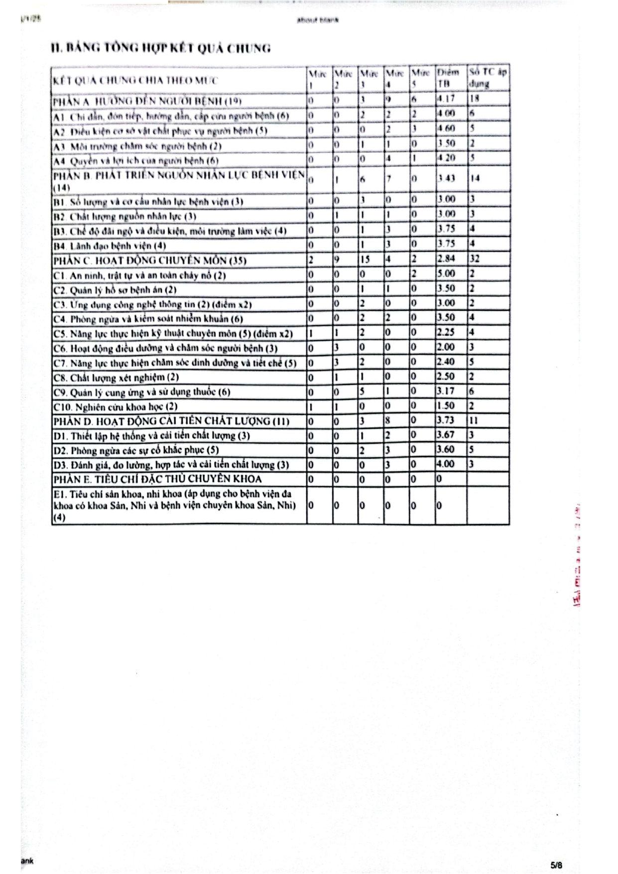KẾT QUẢ TỰ KIỂM TRA ĐÁNH GIÁ CHẤT LƯỢNG BỆNH VIÊN NĂM 2024