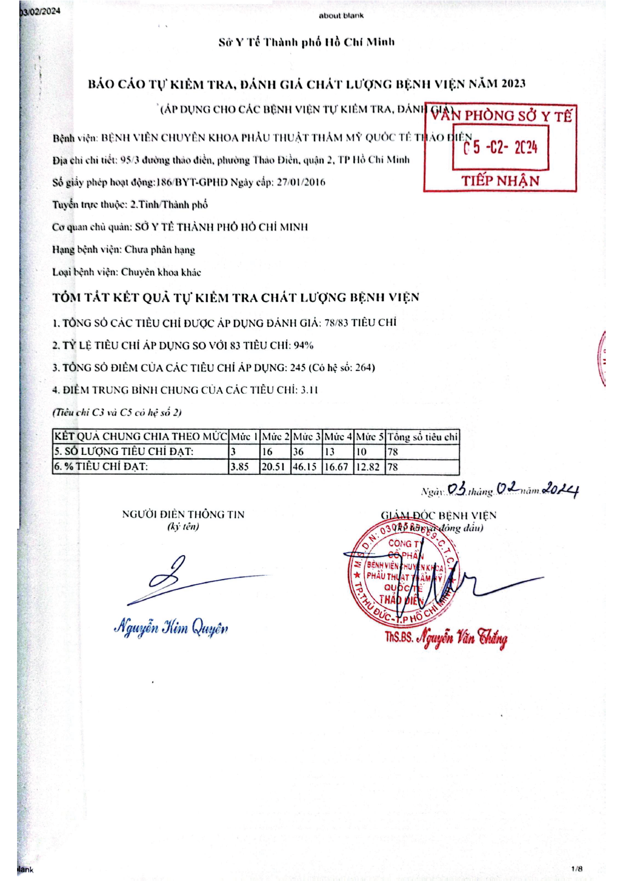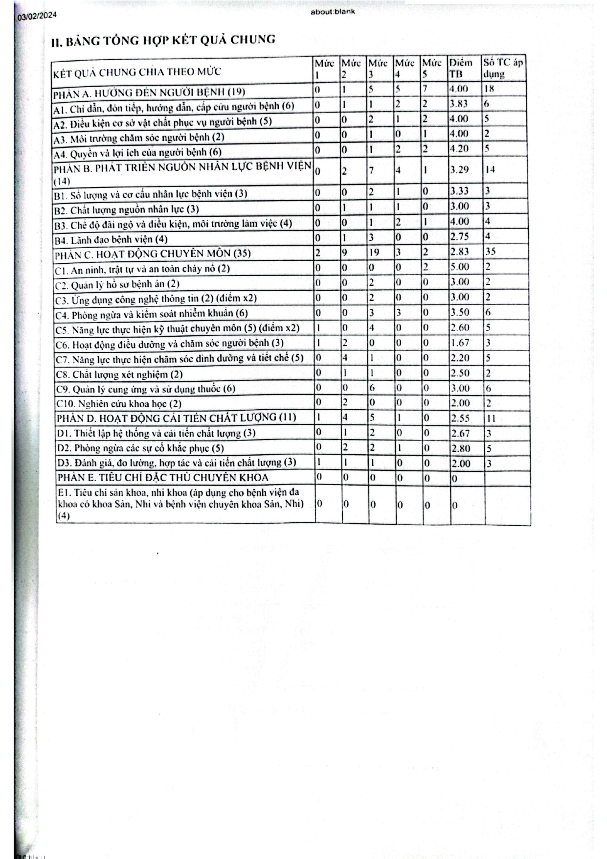 KẾT QUẢ TỰ KIỂM TRA ĐÁNH GIÁ CHẤT LƯỢNG BV NĂM 2023