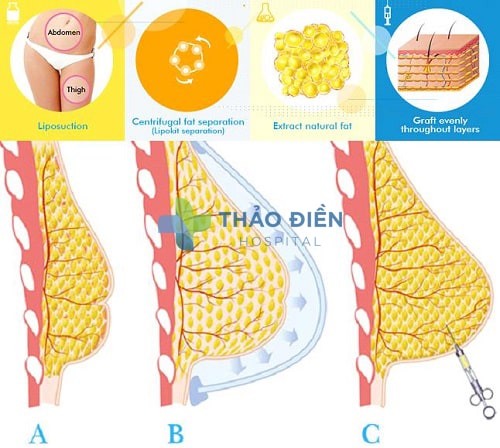 Đây là phương pháp sử dụng mỡ được lấy ra từ các bộ phận của cơ thể: bụng, đùi… để cấy vào ngực giúp tăng kích thước vòng 1.